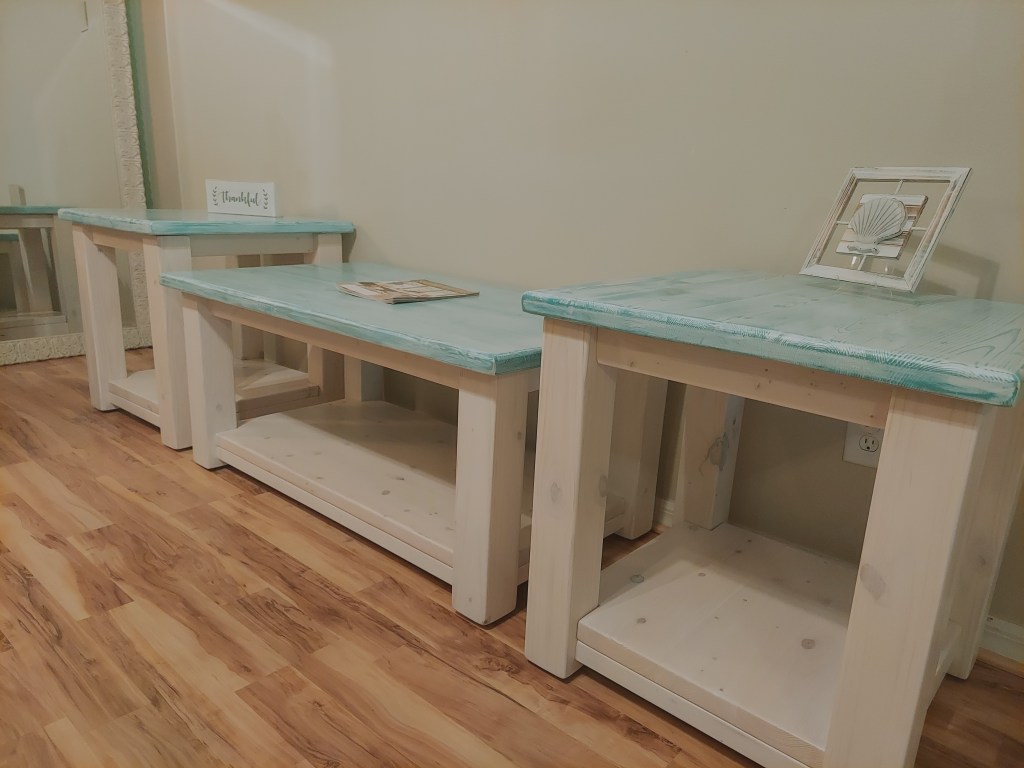 I love Farmhouse, AND live in Florida….so here’s the perfect answer to that cozy Farmhouse, yet Beachside feel. Take a peek below at some of our “Simply White” stain, Aqua Distressed/White, Dark Walnut/Distressed White and our Coastal Whitewashed combinations. Finishes also available in Aqua Whitewashed, Navy Whitewashed, Driftwood, Natural Pure or anything your little “Beachy heart” desires.