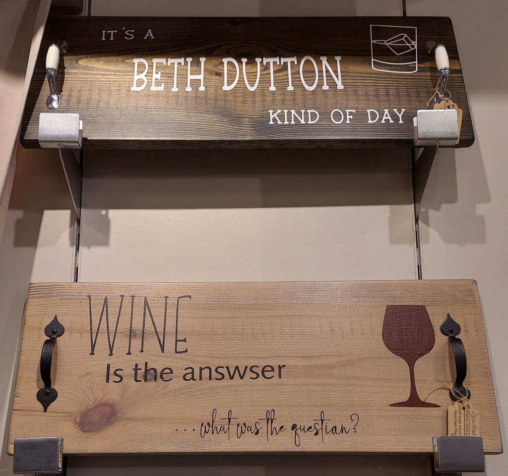 PERSONALIZED SERVING TRAYS CHOICE OF STAIN / CHOICE OF SAYING / SHIP ANYWHERE IN USA $55 ORDER DIRECTLY @ 716. 650. 8318 Share this: Share on X (Opens in new window) X Share on Facebook (Opens in new window) Facebook Like Loading...
